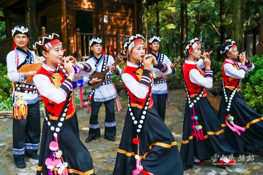 彝族在云南境內約471萬人,是省內人口最多、分布最廣的少數民族,主要聚居在金沙江、元江流域和哀牢山、無量山腹地。彝族是一個能歌善舞的民族,民間打歌、跳樂之風盛行,大三弦、跌腳舞久負盛名。火把節是彝族最具特色的民族節日。彝族村占地50余畝,三虎浮雕墻與虎頭內祖師形象表現了彝族虎鷹文化。太陽歷廣場圖騰柱上有太陽、虎、火和八卦圖形象,周圍環繞著10個朝向不同的月球造型,外圓周有12生肖石雕。依山而建的“...